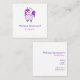 Quadratische Visitenkarten mit einem skurrilen zeichn eines coolen und funky rosa Einhorns, das eine lila Mane und Geschichte hat. Diese niedliche Kreatur trägt eine herzförmige Sonnenbrille und ist mit kleinen Sternen dekoriert.