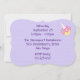 Eine Geburtstagsfeiereinladung mit einer Illustration eines niedlichen und kawaii Einhorns, das friedlich mit einem extravaganten, lockigen Mann und Schwanz schläft. Ein farbenfroher Regenbogenschütze über ihrem Kopf. Adorable mädchenhafte Gestaltung. Set auf weißem und violettem, lila Polka-Punkt-Hintergrund.