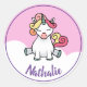 Niedliches Einhorn mit Namen Runder Aufkleber
