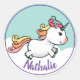 Pastellaufkleber mit Namen, mit einem niedlichen Chubby-Einhorn auf einer Wolke.