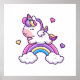 Niedliches Einhorn mit Regenbogen-Cartoon Poster