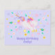NewParkLane - Personalisierte Kindergeburtstag-Postkarte mit einem niedlichen Springunicorn, farbenfrohen Sternen, Blume und Herzen, vor Lavendelhintergrund, einem Geburtstagswunsch und Textvorlage für einen Namen. Einfache Anpassung in Zazzle mit eigenem Text für ein personalisiertes Design. Alle Textstile, Farben, Größen können an Ihre Bedürfnisse angepasst werden. Ein niedliches Schulgeschenk für kleine Mädchen oder für Geburtstagspartys! Karo diese Kollektion für passende Artikel aus! Haben Sie spezielle persönliche Designwünsche? Kontaktieren Sie mich bitte!