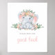 Niedliches Elephant Baby Shower Gästebuch Schild. Rosa und cremefarbene Blume und ein niedlicher Elefant in einer Farbpalette aus Rosa und Pfirsichfarben machen das Hotel zu einem modernen Design mit Vintagem Ambiente. Bearbeiten Sie den Text oder personalisieren Sie ihn so, wie Sie möchten.