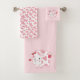 Dieses niedliche Badetuch-Set mit einer Kuh im Kawaii-Stil in rosa, mit Erdbeeren Schwanz und Bug. Ein Erdbeerschmetterling fliegt in der Nähe. Sie können die Elemente personalisieren, indem Sie Text hinzufügen, wenn Sie möchten. Das Handtuch weist ein passendes Kuhfleckmuster auf. Ideal für Pastellkühe, schöne Ästhetik oder Erdbeerkuh-Liebhaber!
