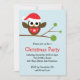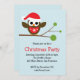 Eine Illustration einer niedlichen Eule auf einem Zweig, gekleidet für ein Weihnachtsfest Party . Die Party-Details werden in einem lustigen Schriftart geschrieben. Sie können die meisten Designelemente/Schriftart/Hintergrund nach Ihren Wünschen verschieben/löschen/ändern.