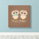 Schöne Abbildung von zwei Eulen. Personalisieren Sie es mit Ihren Namen und Hochzeitsdatum für einen schönen Sake.