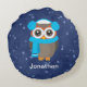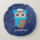 Niedliches Eule mit Ohrmuffen und Scara auf blau Rundes Kissen