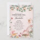 Diese Einladung enthält ein Party zum Thema Verzauberter Garten. Der Hintergrund ist ein leicht verblasstes Rosa mit magischen Bildern von Pilzen, Blume und einer niedlichen kleinen Fee. Obere Bereiche werden von Laternen und Feenleuchten mit Akzenten dargestellt.