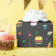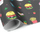 Niedliches, farbiges Essmuster auf dunkelgrau Geschenkpapier