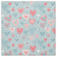 Niedliches Folk Floral Heart Dusty Blue Pink Babyd Stoff