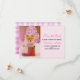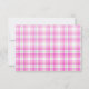 Eine Save the Date flache Karte mit einem bezaubernden Weihnachtshund, der eine niedliche, rosa karierte Krawatte trägt. Dieses winzige kleine braune Pelztier sitzt in einer Hutschachtel. Ein weißer Baum mit rosa Lampen im Hintergrund. Die Lichter sind verschwommen und verleihen ihm einen magischen Buh-Effekt. Darling Weihnachten Thema Foto.
