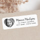 Niedliche Foto-Rücksendeadressen-Aufkleber mit einem herzförmigen Foto und Vorlagenfeldern für Ihren Namen und Ihre Adresse auf einem weißen oder benutzerdefinierten Farbhintergrund. Name oder Familienname in einem whimsical-Script-Schriftart. Ändern Sie Schriftart und Farben im Designwerkzeug.