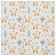 Ein glücklicher, kleiner Goldfuchs ist das Merkmal dieses niedlichen Stoffes. Zusammen mit den Fuchsbildern sind Bäume und Blume. Alles ist auf einem weißen Hintergrund angeordnet.