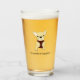 Glass mit niedlichem französischen Bulldog, der einen karierten, schwarzen und roten Tragestoff trägt. Im Text steht "Frenchie Camper". Das Design ist anpassbar.