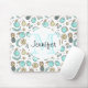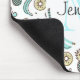 Mauspad mit einer niedlichen Fruchtmuster Linie zeichnend Stil. Hellgrüne und gelbe Farben. Ein lustiges sommerliches Design. Ein weißer Kreis überlagert mit Ihrem Namen und einem Monogramm, das sich im Inneren befindet.