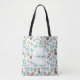 Tote Tasche mit einem niedlichen Fruchtmuster Linie zeichnend Stil. Hellgrüne und gelbe Farben. Ein lustiges sommerliches Design. Ein weißer Kreis überlagert mit Ihrem Namen und einem Monogramm, das sich im Inneren befindet.