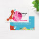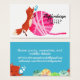 Niedlicher, bezaubernder Fuchs, der auf einer flauschigen, farbenfrohen Garnkugel auf dieser Visitenkarte für Stricker-, Strick-, Häkelchen- oder Heimgarngeschäfte liebt.