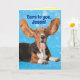 Niedlich Basset Hound mit den Ohren, die er in der Luft aufhob, mit dem Titel "Ohren für dich, [Name hier hinzufügen]!" In ihm steht: "Happy Birthday!" Liebhaber des Hundes (vor allem Basset Hound Liebhaber) können sich auf die sonnige Geburtstagskarte freuen.