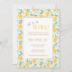 Niedliches Gelbes Zitronenblatt Mädchen Babydusche Einladung - Feiern Sie die bevorstehende Ankunft Ihres wertvollen Mädchens mit dieser einfachen, niedlichen und bezaubernden "Baby Shower Invitation" mit gelben Zitronenfrüchten, umgeben von Blattmuster. Sämtliche Texte sind so vorbereitet, dass Sie mit Ihrem Baby Duschdetails einfach und schnell personalisieren können.