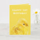 Niedliches gelbes Baby Kick 1. Happy Geburtstag Karte