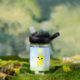 Niedliches Gelbes Küken und Blume auf hellblauem W Trinkflasche