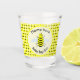 Dieses phantastische Schuss-Glas zeigt ein grafisches Bild einer niedlichen, gelben Babybiene mit schwarzen Beinen und kahlen Augen. Er hat einen gelb verschwommenen Körper mit schwarzen Streifen und niedlichen schwarzen Antennen auf seinem verschwommenen Kopf. Seine zarten Flügel haben ein blassblaues, motlisiertes Muster auf ihnen. Das Design umfasst auch hübsche gelbe Sonnenblumen. Der Text ist anpassbar, sodass Sie den Namen Ihres schönen Babys einschließen können und Sie löschen können, wenn dies zur Ankündigung des Geschlechts des Babys erforderlich ist. Das Design ist geschlechtsneutral und eignet sich daher für einen kleinen Jungen oder ein kleines Mädchen.