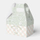 Dies ist eine bezaubernde, geschlechtsneutrale Halloween Green & Orange 1. Geburtstag Gefallen Box. Der Hintergrund zeigt ein niedliches, von Hand gezeichnet Muster aus Gespenstern, Fledermäusen, Sternen und Monden auf einem pastellgrünen Hintergrund. Die Vorderseite und die Rückseite sind mit einem niedlichen Gespenst auf einem orangefarbenen und grünen Gingham-Muster personalisiert mit Namen und Datum versehen.