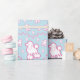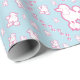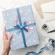 Dieses Geschenkverpackungspapiermuster kennzeichnet niedliche Spielzeug-Pudelhunde, die gepflegt worden sind und hat Herz-förmige Tatzendrucke. Rosa und Weiß auf einem hellblauen Hintergrund. Groß für Kinder und Hundeliebhaber.