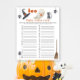 Mit niedlicher Wasserfarbe von Baby Geist und Halloween Ästhetik. Ein bisschen Boo ist fast fällig! Halloween Babydusche mit Aquarellhocker, schwarze Katze, Hexenhut, Magic Mop ( Besenstiel ), Spinne, die aus einem Netz hängt. Der kleine Geist isst einen Lollipop.