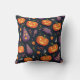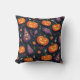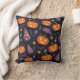 Orange Kürbislaterne Pumkin Pattern Halloween Kissen Dieses Halloween Wohngestaltung Kissen mit einem Muster von niedlich orangen und gelben Jack-o'-Laterne Kürbis mit einer schwarzen Hintergrundfarbe.