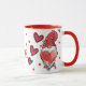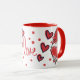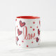 Dies ist eine bezaubernde Tasse, jemandem für den Valentinstag zu schenken. Dieses Design zeigt eine niedliche Gnome, die ein Herz in den Händen halten, mit einem Punkt und einem Herzmuster und dem Wort Liebe an der Vorderseite der Tasse.