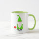 Niedliches Gnome in grüner Tasse gekleidet. Text bereit, um personalisiert zu sein. Ein Gnome symbolisiert den Power des Naturgeistes und all die Güte, die daraus entsteht.