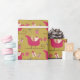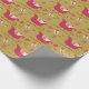 Dieses niedliche Weihnachtsgeschenk-Wrap zeichnet sich durch ein bezauberndes Urlaubsmuster mit goldenem Hintergrund und den roten Schlitten des Weihnachtsmanns aus, mit Geschenken, die mit hübschen Bändern verpackt sind.