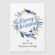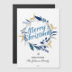 Diese elegante Weihnachtskarte bietet einen Kranz mit goldenen Rentieren und blau-grauem Grün. Frohe Weihnachten ist in einem schönen handgeschriebenen Skript geschrieben. Personalisieren Sie diese Karte durch Hinzufügen von Namen und Jahr.