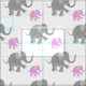 Dieses schöne Gewebe kennzeichnet ein einfaches modernes Muster niedlichen grauen und rosa kleinen Elefanten mit playfully angehobenen Stämmen und Füßen.