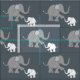 Dieses schöne Gewebe kennzeichnet ein schönes Muster eines Paares niedlicher kleiner Elefanten mit playfully angehobene Stämme und Füße in Grauem und in weißem, Set gegen einen dunkelgrauen Hintergrund.