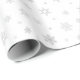 Dieses Verpackungspapier weist ein niedliches, graues Schneeflockenmuster auf weißem Hintergrund auf.