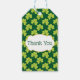 Vielen Dank an das Geschenketikett mit einem niedlich wiederholenden Muster mit olivgrünen Kleeblatten auf dunkelgrünem Hintergrund.