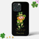 Niedlicher, grüner Gnome mit einem Klee auf schwarzem Hintergrund. Text kann personalisiert sein.