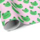 Niedliches grünes Froschmuster Rosa Geschenkpapier