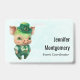 Ein Namensschild mit einer niedlichen grünen Abbildung eines Schweins, das sich auf den Hinterfüßen stehend, in extravagantem Hut, Weste und Hose gekleidet ist. Sehr schön und perfekt geeignet für St. Patrick's Day.