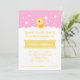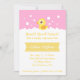 Feiern Sie die Ankunft Ihres kleinen Mädchens mit dieser niedlichen gelben Dusche und Blasen Babydusche laden ein, dass sicher ist, einen Eindruck mit Ihren Gästen verlassen. Ein gelbes Banner zur Hervorhebung des Mädchennamens. Personalisieren Sie einfach Ihre Party-Details in dunkelgelb. Ein tolles Design für jeden, der ein Mädchen Duschbad Party plant!