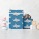 Haipapier mit einem Muster von niedlichen, kleinen Haien auf blauem Hintergrund. Gehen Sie ein oder zwei Rollen für sich selbst und genießen Sie jedes Geschenk, jedes Geschenk, in Haie. Niedliche Hai-Tierverpackungspapier | ©Melissa Patton - Künstler/Illustrator