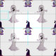 Niedliches Halloween-Gnomen mit lila und Hexenhut mit Spinne und Weiß, spukhaft, beängstigende Geister. Erstellt in einem nahtlosen Muster. Sie können den Hintergrund in den Designtools ändern.