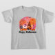 Niedlicher Halloween-T - Shirt mit Gnome, Geist, Kürbissen und Fallbäumen mit rosa Mond im Hintergrund. Der Text auf dem T - Shirt ist anpassbar.