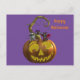 Drei niedliche Mäuse in Halloween-Kostümen - eine Hexe, ein Teufel und ein Strudel - sitzen zusammen auf einem lächelnden Jack der Laterne. Sie sind bereit für Halloween-Trick oder -Behandlung.