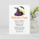 Niedliche Einladung zum Halloween-Party, mit einfachen Grafiken von Hexenhut, Besen und Fledermaus, ganz oben auf der weißen Einladung. Personalisieren Sie den gesamten Text für Ihren Halloween-Bash. Geeignet für Erwachsene und Kinder Party.