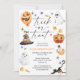 Mit unseren Niedlichen Einladungen zum Halloween-Party laden wir Sie zu Ihrem köstlichen Party ein. Die Einladungen zu Halloween zeigen "Trick or Treat" in handgeschriebener Typografie mit den unten stehenden Party. An der Grenze befinden sich bemalte Aquarellgeister, ein Hexenhut, Süßmais, ein Tränke und ein Kürbisballon. Die Einladungen sind perfekt für Halloween-Partys.
