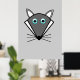 Dieses Poster zeigt einen kawaii-artigen Cartoon eines niedlichen grauen Halloween-Wolfs mit spitzen Ohren, leuchtend blauen Augen und schwarzer Nase, umgeben von Whiskers. Dieser niedliche Wolf ist perfekt für Halloween oder für Tierfreunde.