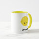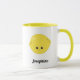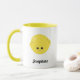 Niedliche und stilvolle Tasse mit einem adorable kawaii lächelnden Zitrone und einem bearbeitbaren Text-Platzhalter für Ihren Namen oder benutzerdefinierten Text in einem modernen, fett gedruckten Skript. Anpassen Sie dieses Design einfach an Ihren Stil, indem Sie auf "Anpassen" klicken, um zum Design-Tool zu gehen und Ihren eigenen Text oder Details hinzufügen. Dieses süße Design ist ein perfektes Geschenk für Feinschmecker und Obstliebhaber.